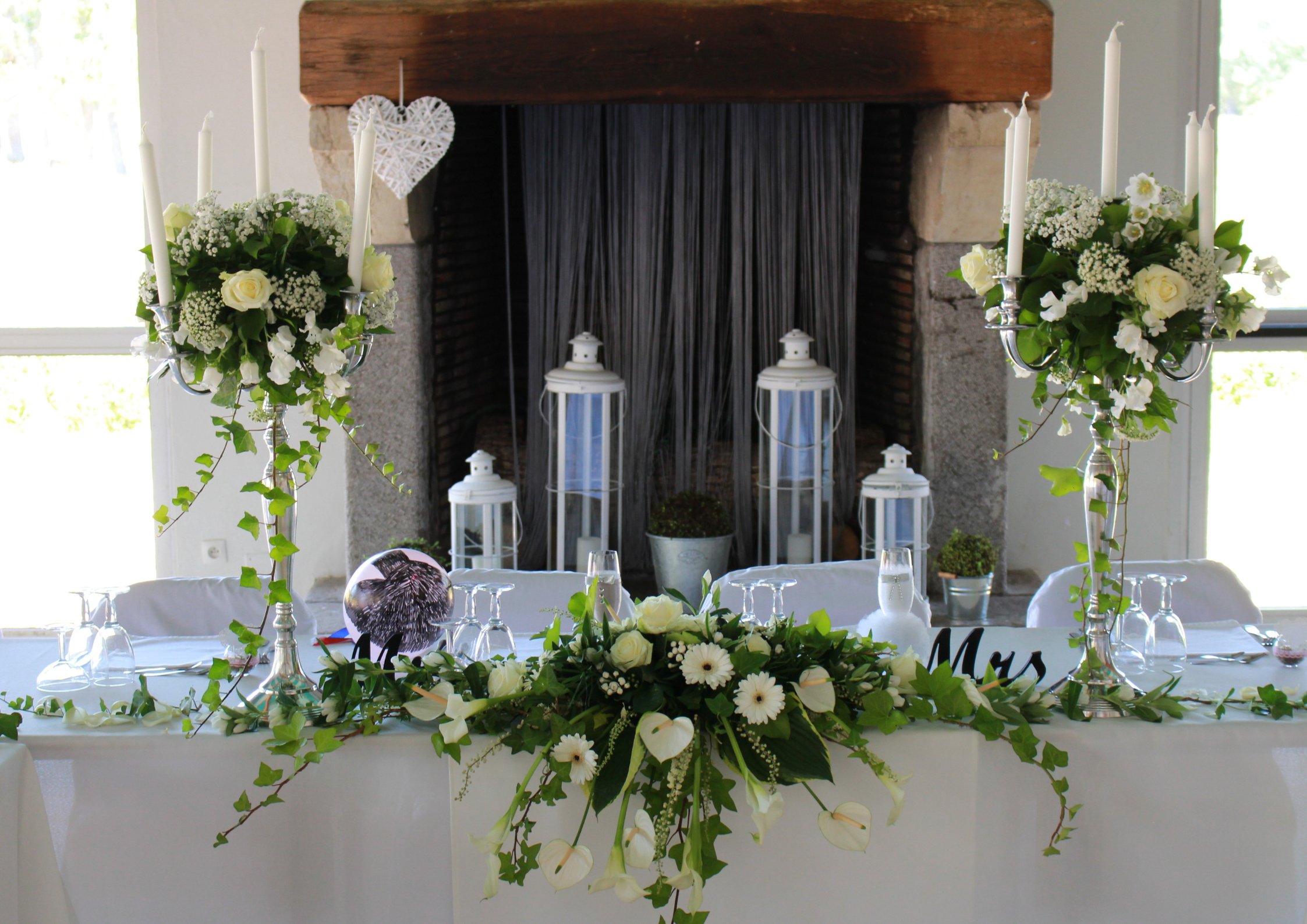 - Décoration de salle et de tables : centres de table, compositions suspendues, guirlandes fleuries… Nous harmonisons chaque détail à votre thème.
